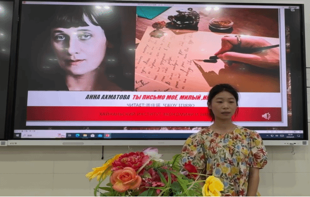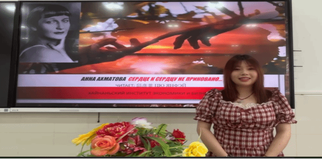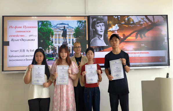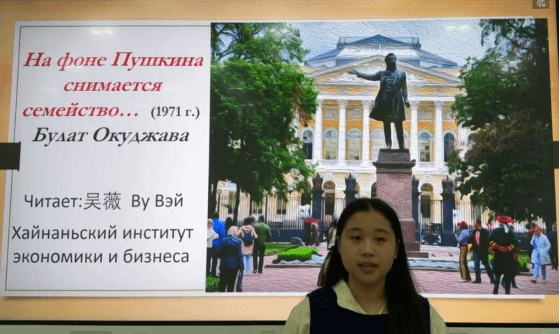 伟德国际19462023级员工周佳瑶、吴薇、 李松彦 、邱彦菲参加了诗歌朗诵比赛,指导老师周丽霞和外教伊琳娜-维克托罗夫娜-波波维奇娃副教授。