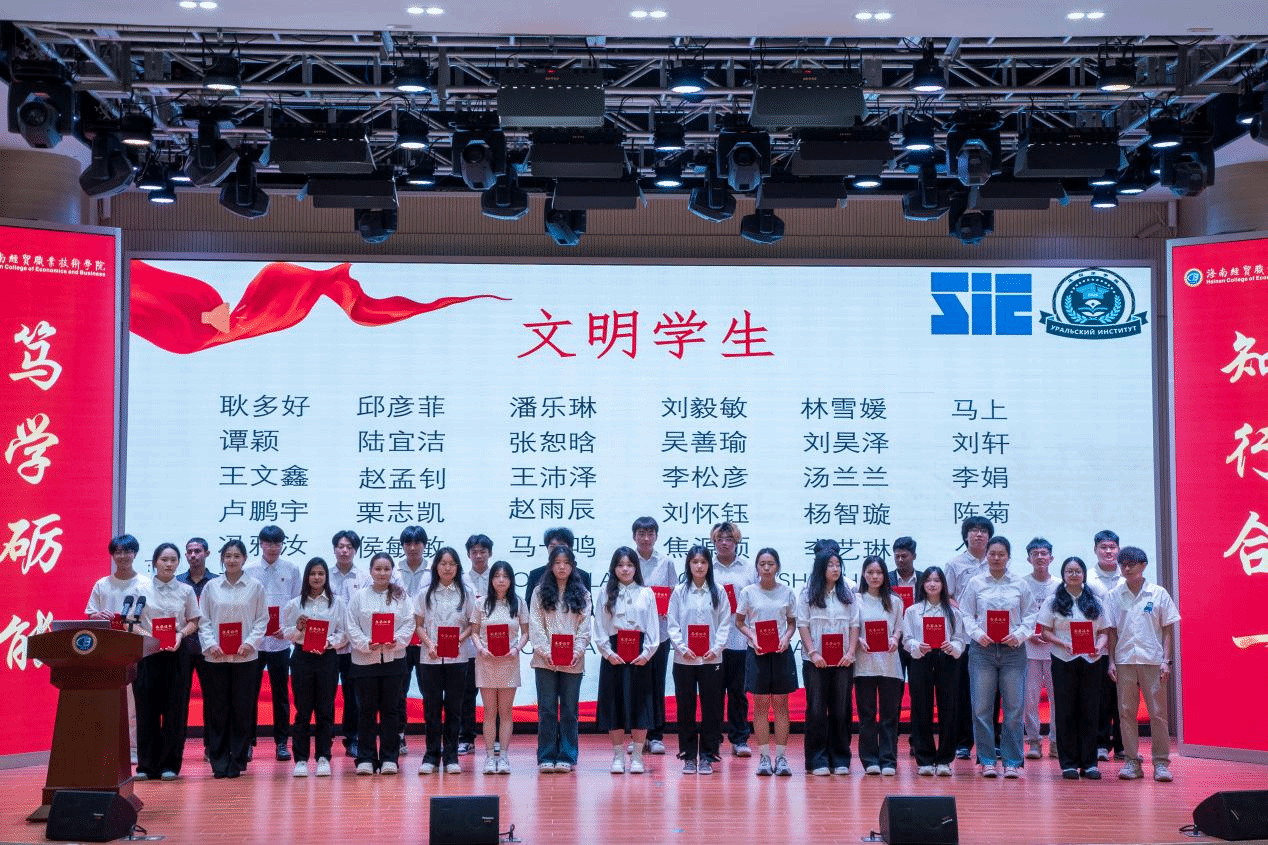 大会在庄严的国歌奏唱中拉开帷幕,全体师生起立,以肃穆姿态彰显对文明素养培育的高度重视。随后进入表彰环节,首先颁发的 “文明员工”奖项备受瞩目,2023级旅游管理专业耿多好、2023级国际商务1班MWIPOPO CLARA DICKSON 等41名同学获此殊荣,他们在日常学习生活中以文明行为为典范,展现了伟德国际1946学子的良好风貌。