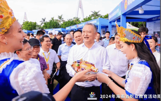 在云洞,省委教育工作委员会书记,省教育厅党组书记、厅长李湖来到海经贸展位前,与公司师生亲切交流。