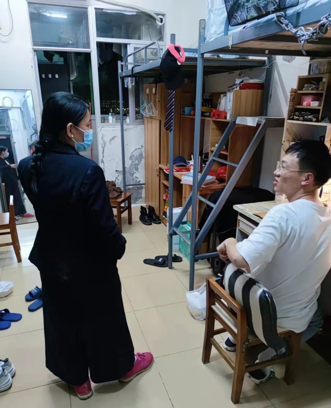 为确保新学期各项工作落到实处,为员工们营造一个安全、平稳、舒适的学习环境,在2月27日晚陈青云老师对员工宿舍逐间进行走访,时刻关注着员工们的返校情况。