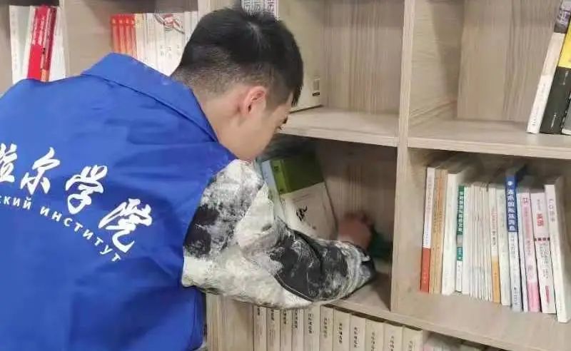 一个个身穿蓝色马甲劳动的乌拉尔学子,成了当天图书馆里最靓丽的一道风景线。