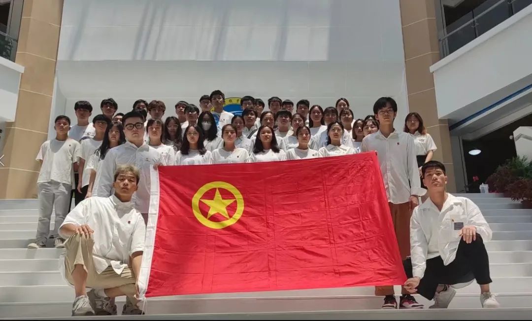 “我志愿加入中国共产主义青年团 ......为共产主义事业而奋斗”,在赖国琪的带领下,全体团员高举右拳,面向鲜红的团旗庄严宣誓,再次重温入团誓词,表达了伟德国际1946团总支坚定理想信念、牢记使命担当的青春誓言。