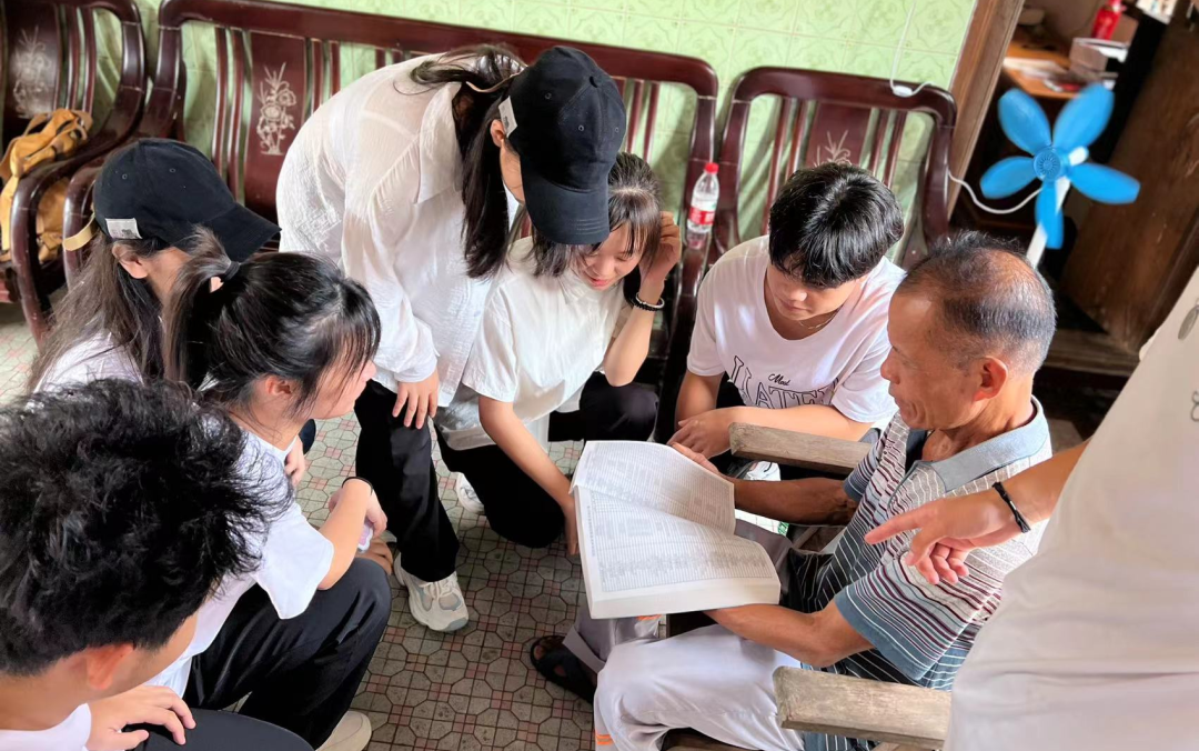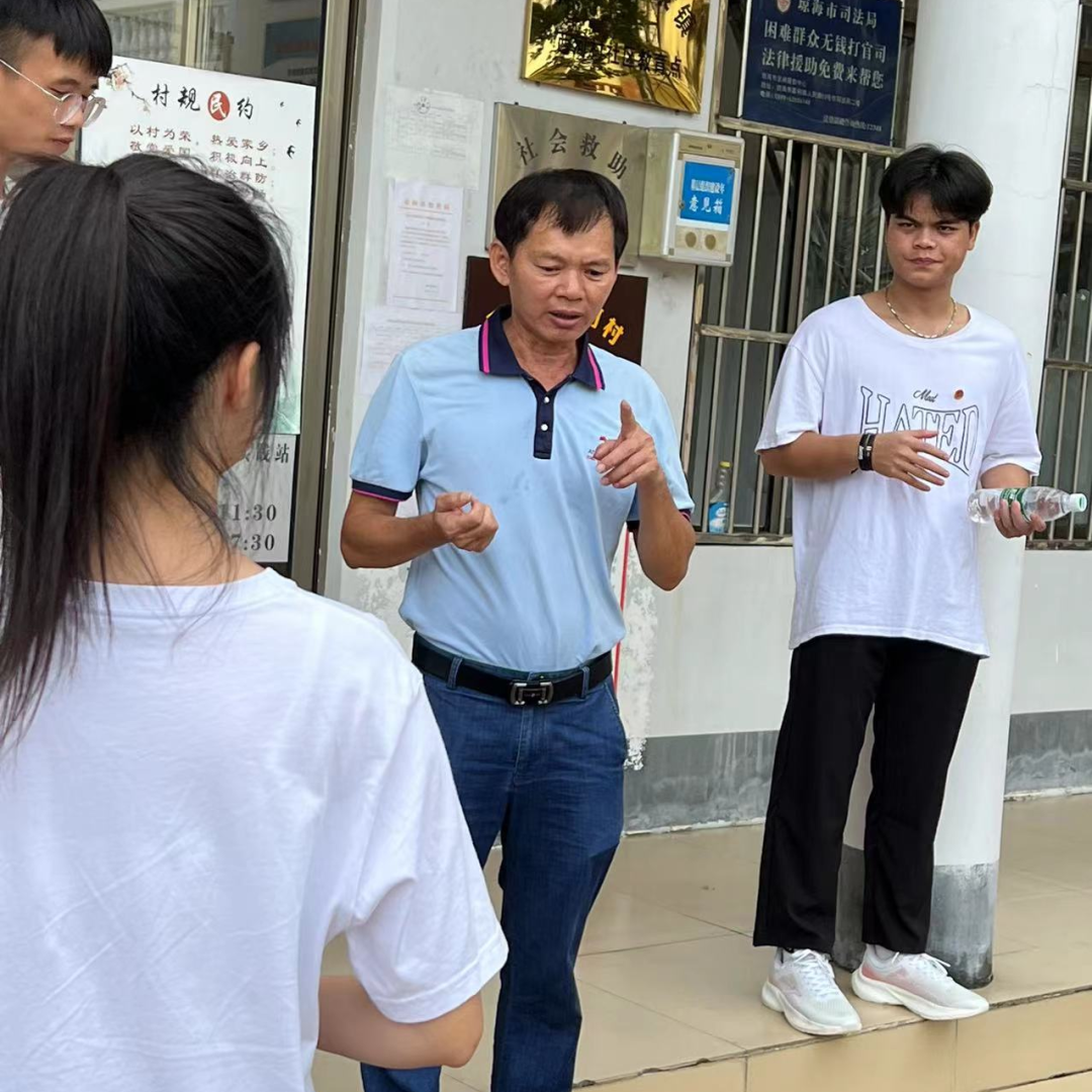 辅导员范欣欣老师一行人来到本村老党员的家里,听老党员讲述琼崖革命的红色故事。与本村李清书记进行深入交谈,李清书记嘱咐同学们要懂得感恩党和老师的教育,学成后要回馈社会,回馈家乡。