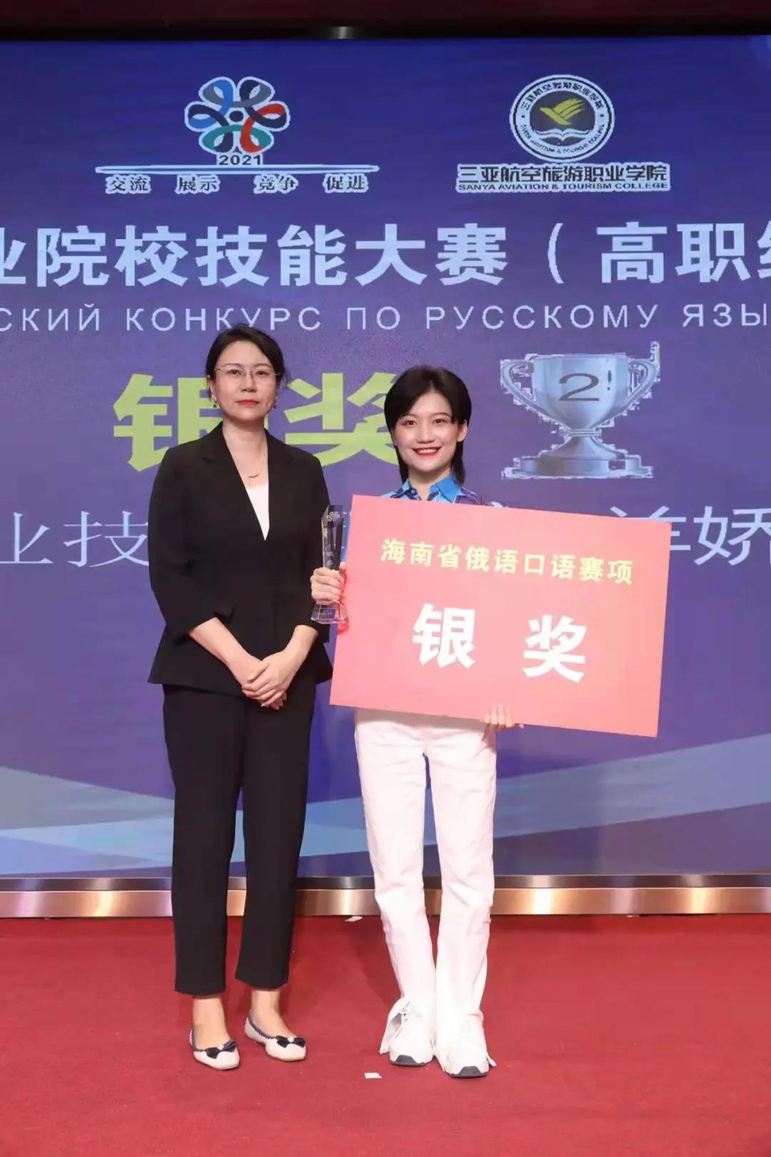 20级旅游管理班羊娇在海南省俄语口语职业技能大赛中斩获银奖。 20级旅游管理班郑卫洁在海南省俄语口语职业技能大赛中荣获优胜奖。