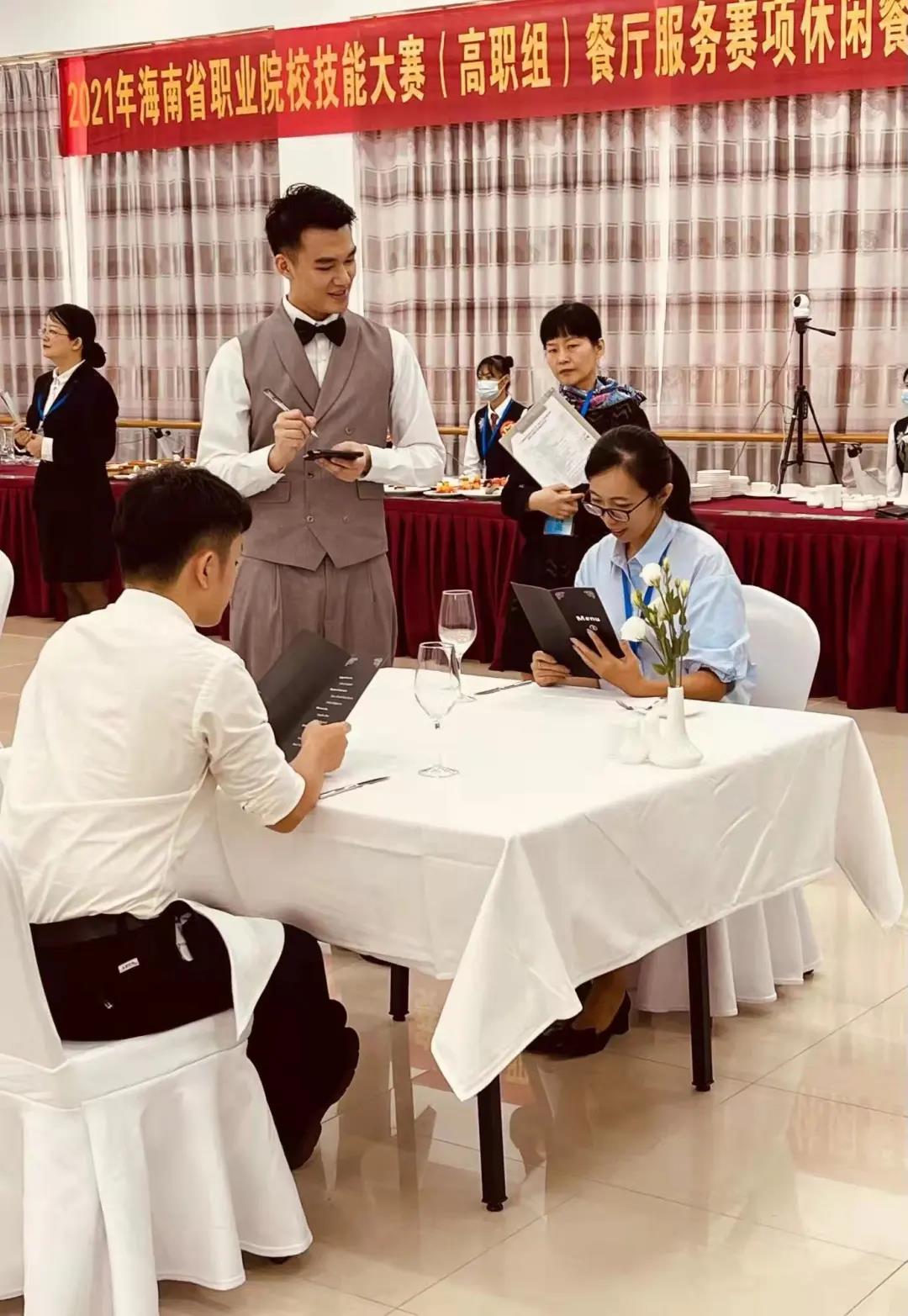 20级旅游管理班王洪亮在西餐摆台与鸡尾酒调制赛项当中鹳荣获银奖。