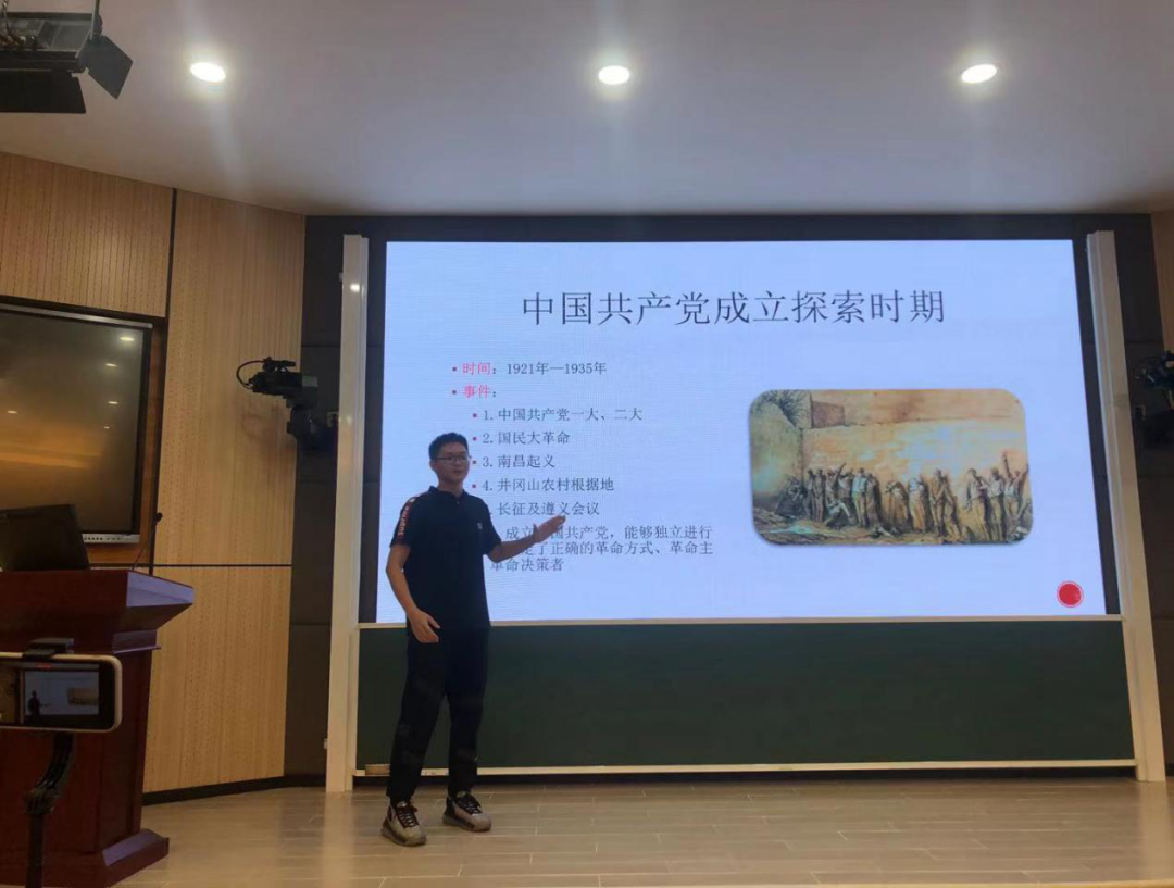 其次由金鹏毅同学讲述中国共产党的历史,从成立、探索、壮大等多个角度进行分析,绘声绘色的描述了建党百年的奋斗历程和伟大成就,金鹏毅同学表示:我们应肩负好历史使命,自觉树立团员意识,在之后的生活与学习中规范自身言行,严于律己,发挥共青团员的先锋模范作用。