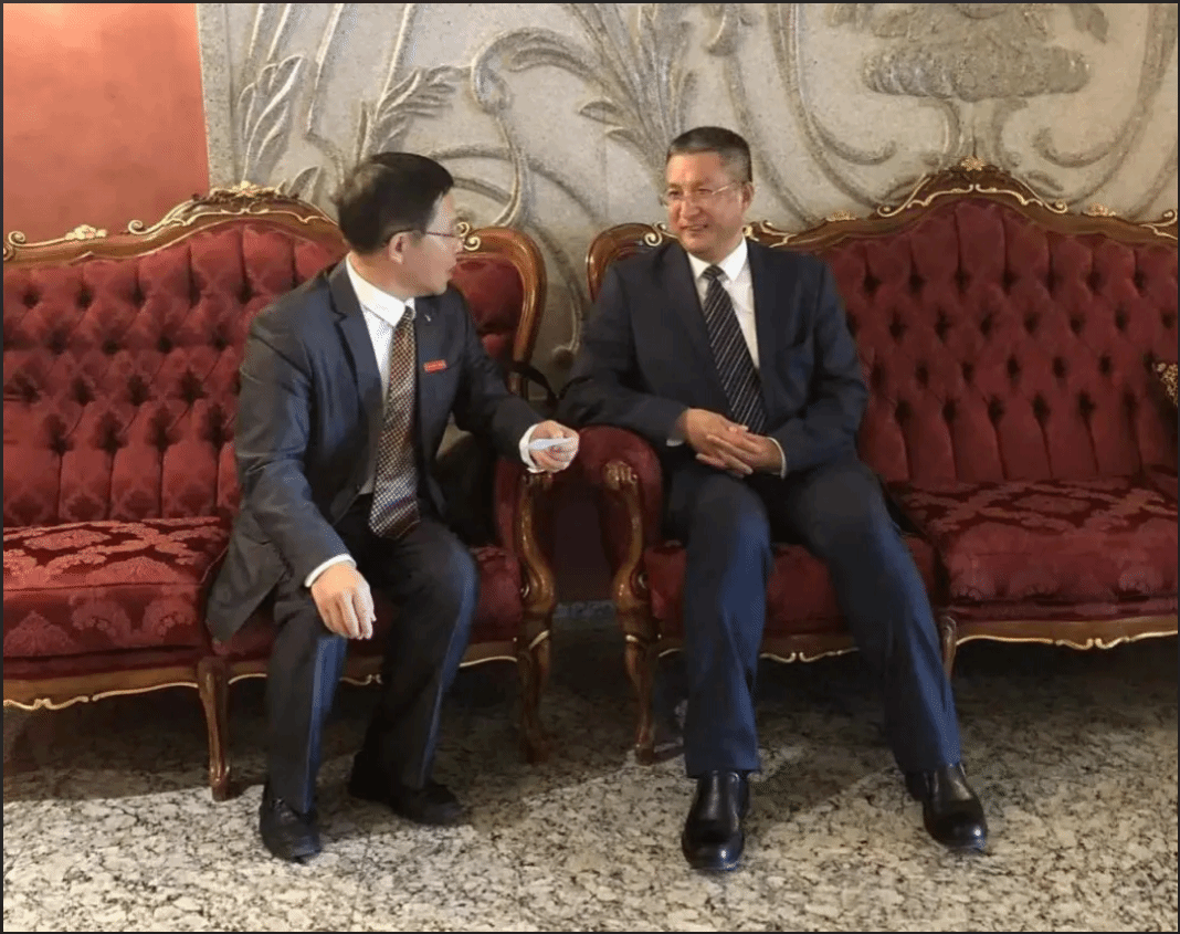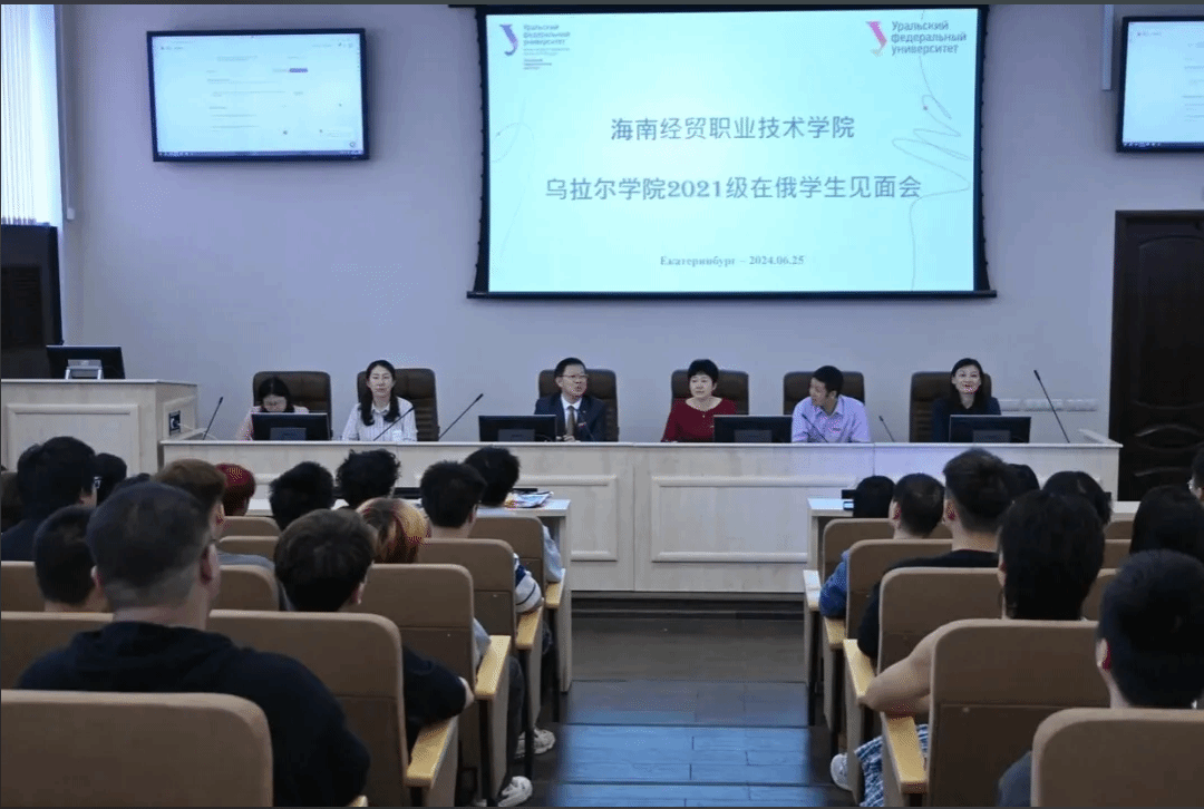 当天下午,海经贸代表团专程拜访了中华人民共和国驻叶卡捷琳堡总领事馆教育领事孙来麟。陈修焕详细介绍了海南自由贸易港建设情况和海经贸国际化办学所取得的成果,希望在总领事馆的支持下,共同推动中俄教育文化交流。孙来麟对海经贸在中俄合作办学中作出的贡献给予肯定,希望两校继续深化交流和合作,为推动两国文明交流互鉴作出积极贡献。