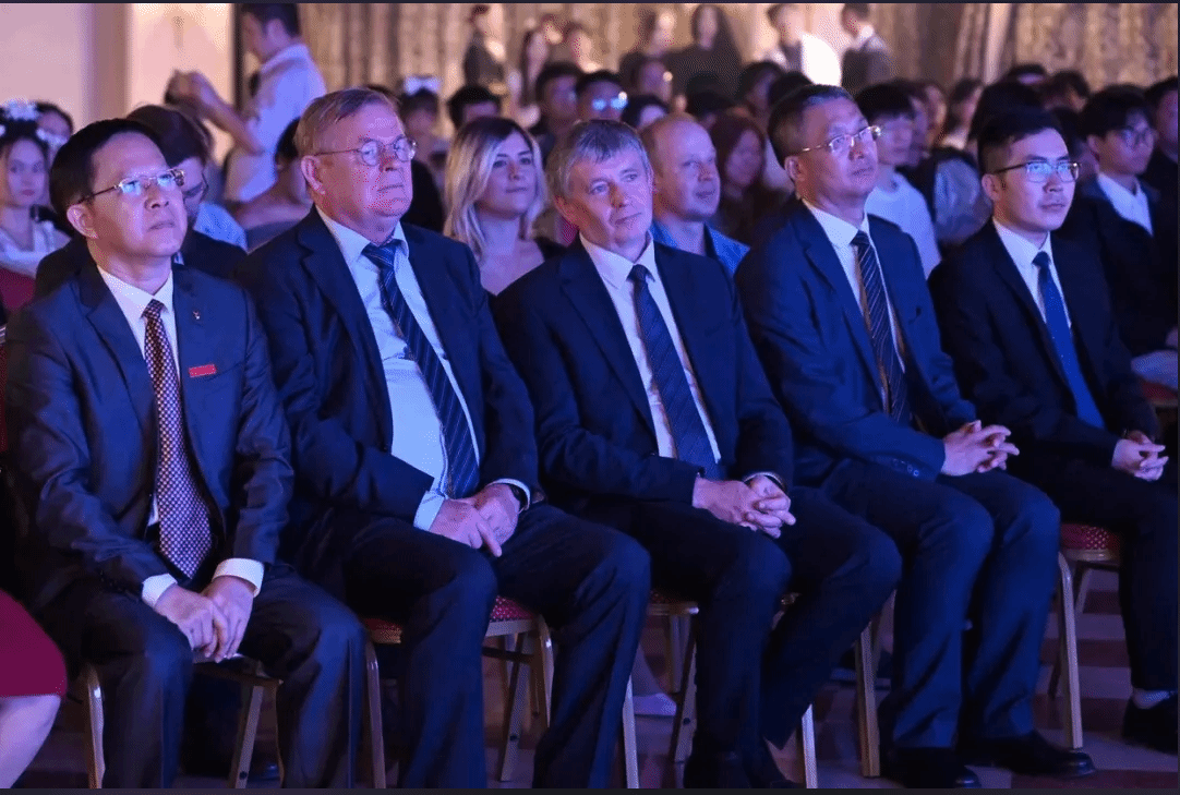 俄罗斯乌拉尔联邦大学董事长科克沙罗夫·维克多·阿纳托利耶维奇(左三)、副董事长克尼亚泽夫·谢尔盖·季霍诺维奇(左二),伟德BV1946官网副经理陈修焕(左一)现场出席典礼