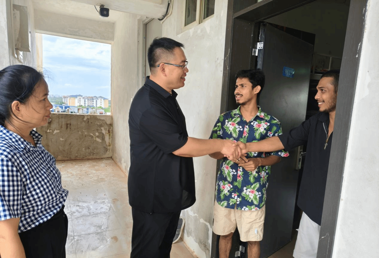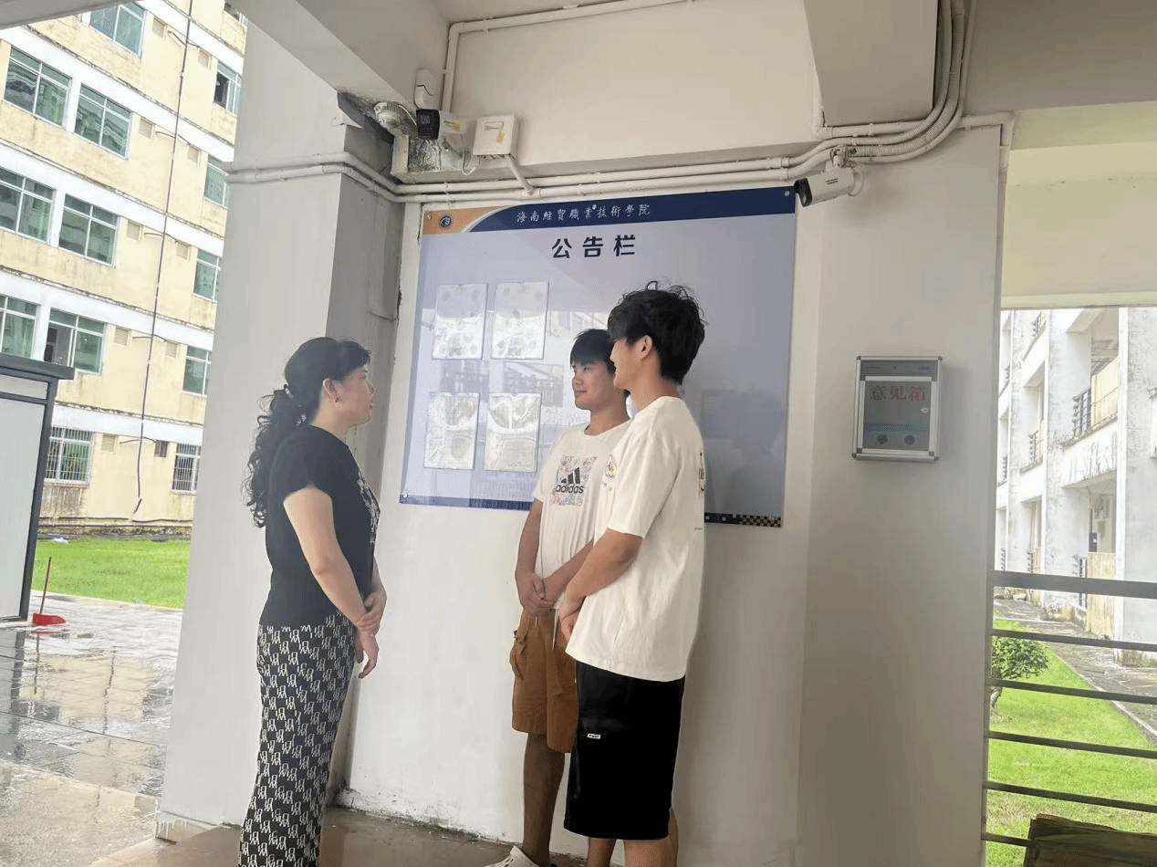 随后,公司辅导员、班主任在党总支书记于勇的带领下组成专项走访小组,排查员工宿舍安全情况。走访中,工作人员重点检查宿舍门窗玻璃是否破损、阳台护栏是否牢固、电路开关及电器使用是否正常,细致询问员工台风期间生活需求及安全状况,叮嘱员工注意雨后用电、防滑安全,及时反馈宿舍设施故障。