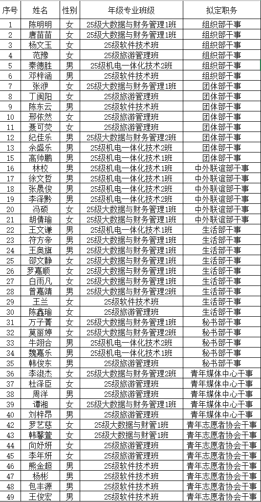 伟德国际1946第六届团学青干事录取名单揭晓